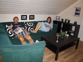 I går ble den innviet av de første besøkende, nemlig Elisabeth og Jarle, de trivdes godt på «stalloftet», med hestene mumsende og snorkende i etagen under!