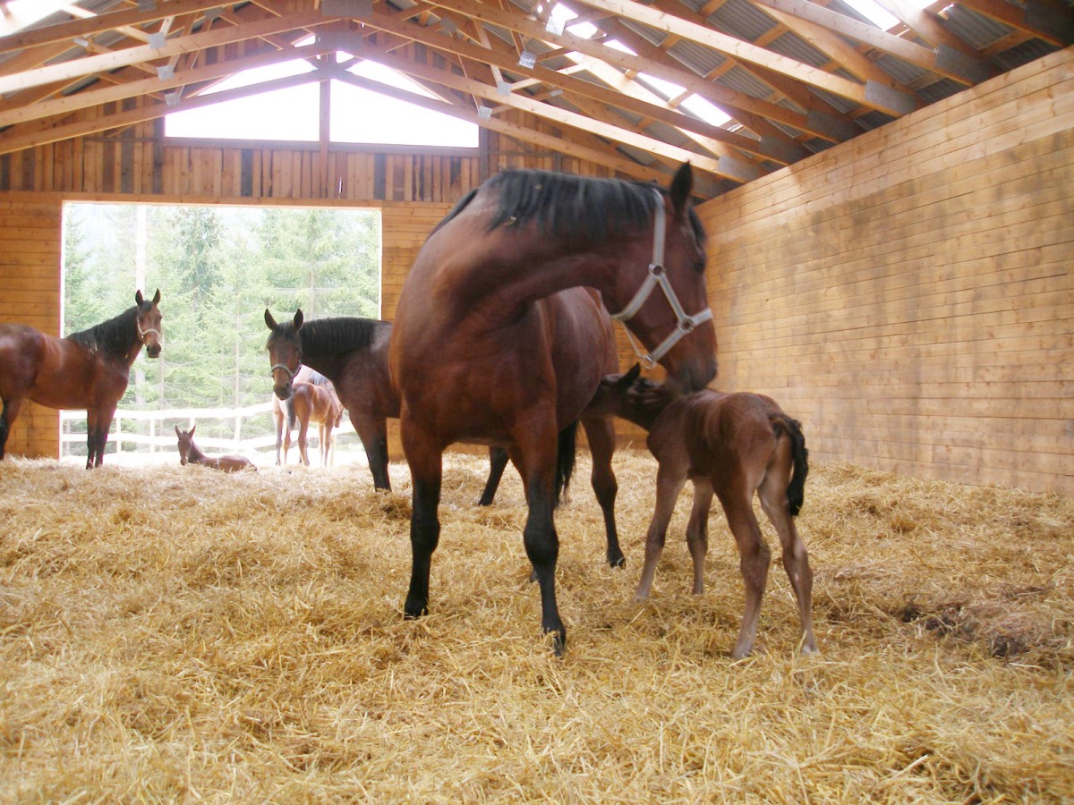 Mye mosjon i variert terreng gir sunne og sterke føll, det er bra for både utvikling av hjerte/lunger og ledd, sener og ligamenter. Og en ting er sikkert, med de belastninger som hestene skal tåle i trening og løp, er det viktig at de har fått en så god start i livet som overhodet mulig.