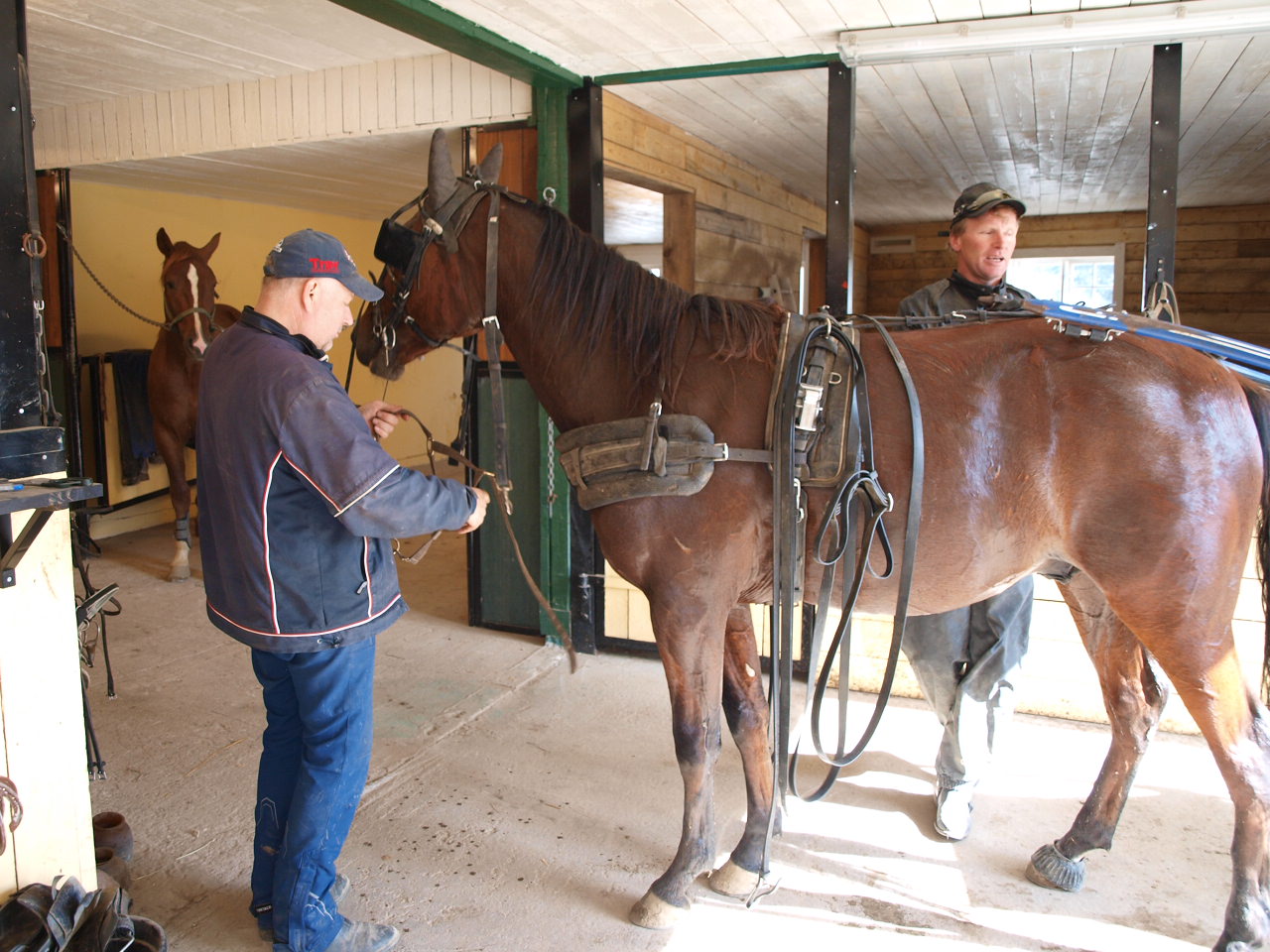 Vi begynner innkjøringen med en gang hestene kommer inn fra beite som åringer, vanligvis er de klar til å spennes for vogn etter ca. tre uker med tommekjøring.
